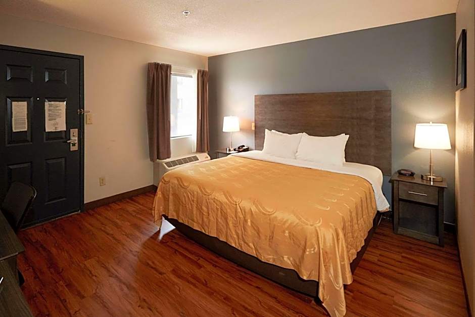 Welcome to our Efficiency Queen Room, perfect for families! With two spacious Queen beds, this non-smoking room comfortably accommodates 4 adults and 3 children. Enjoy amenities like a bathtub, free Wifi and a flat-screen TV, making your stay both comfortable and convenient.